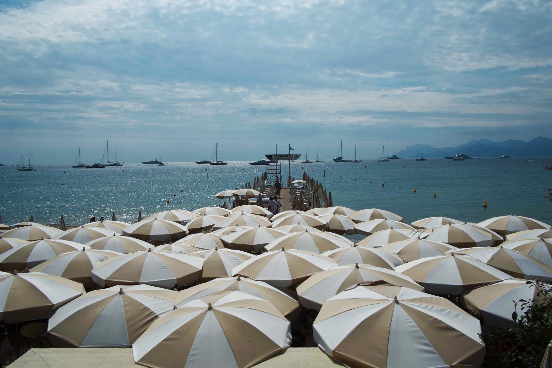 Auf der anderen Straßenseite dann der Hotelstrand, sorgsam beschattet, und der hoteleigene Badesteg. So bleiben die Gäste unter sich. Neben den Palmen und Pinien der Croisette bummeln heute Engländer, Deutsche, Franzosen, Belgier, Holländer, Schweizer und Russen über die Promenade.