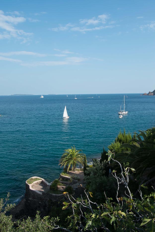 Das Rot des Porphyrgesteins harmoniert mit den Farbtönen der immergrünen Hartlaubwälder und der Pinienhaine, mit dem Himmelsblau und dem Ultramarin des Meeres, das aus gutem Grund Cote d’Azur heißt.